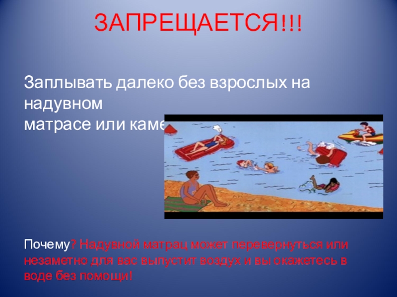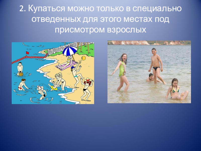 Слайд 42. Купаться можно только в специально отведенных для этого местах под