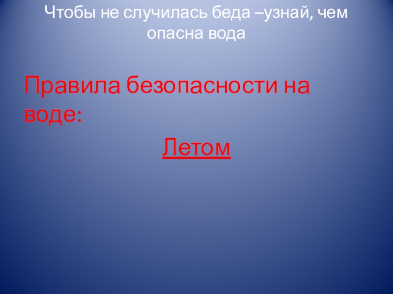 Слайд 2Чтобы не случилась беда –узнай, чем опасна вода