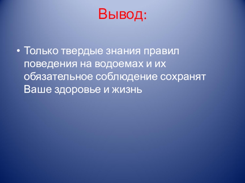 Только твердые знания правил поведения на водоемах и их обязательное соблюдение