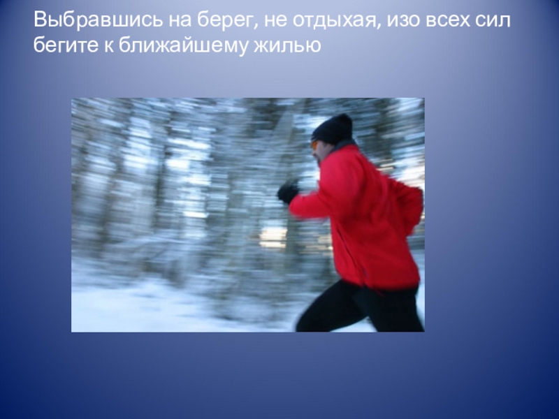 Слайд 35Выбравшись на берег, не отдыхая, изо всех сил бегите к ближайшему