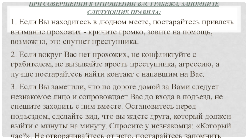Слайд 12При совершении в отношении Вас грабежа, запомните следующие правила: