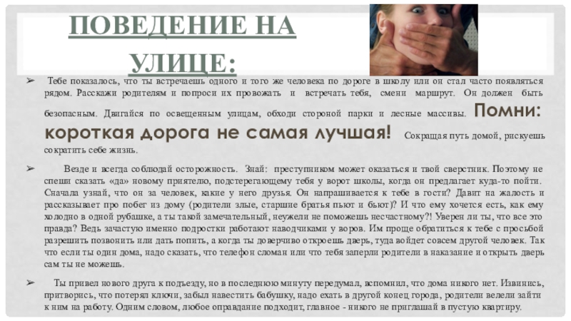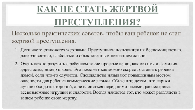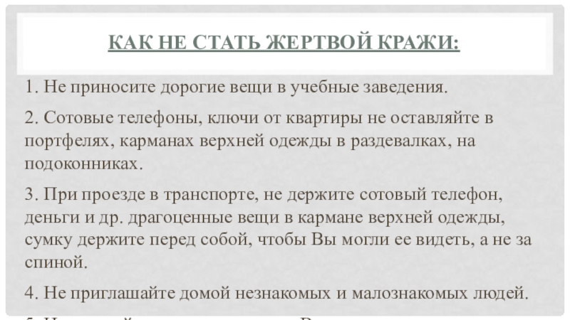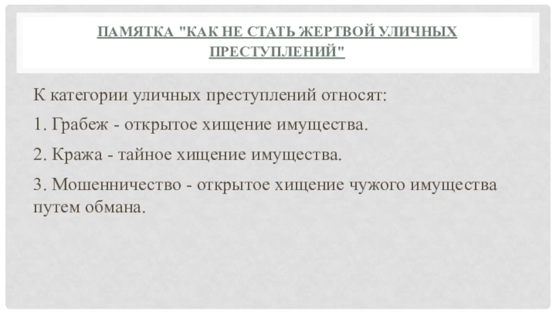 Слайд 11ПАМЯТКА "КАК НЕ СТАТЬ ЖЕРТВОЙ УЛИЧНЫХ ПРЕСТУПЛЕНИЙ"