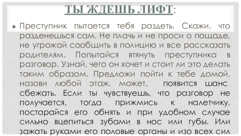 Преступник пытается тебя раздеть. Скажи, что разденешься сам. Не