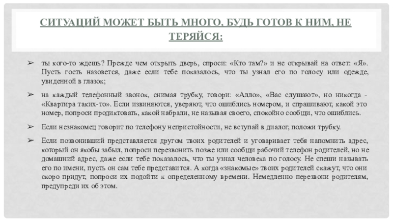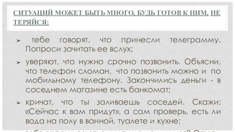 Слайд 3Ситуаций может быть много, будь готов к ним, не теряйся:
