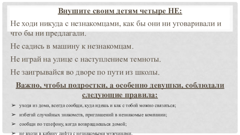 Важно, чтобы подростки, а особенно девушки, соблюдали следующие правила: