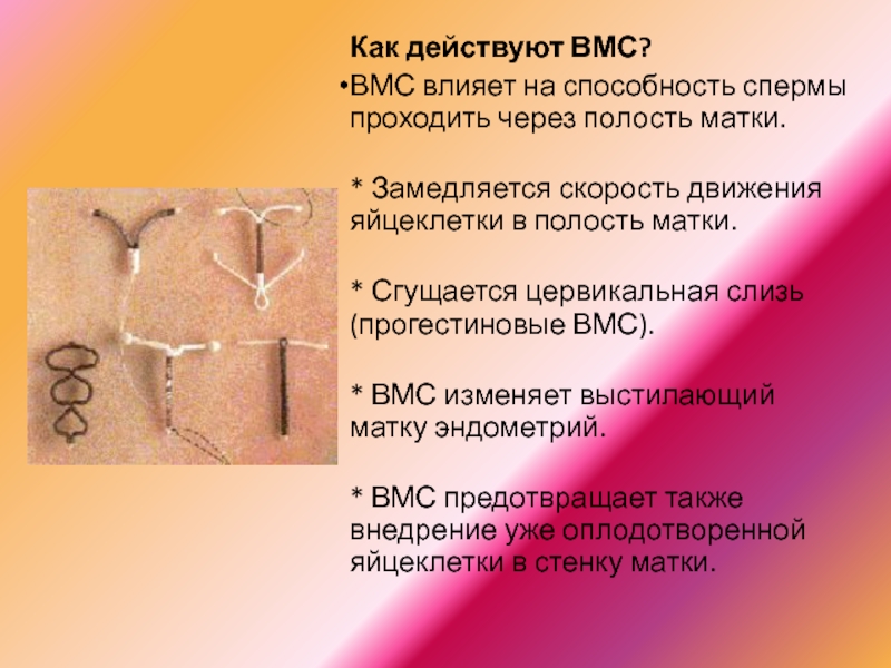 * ВМС предотвращает также внедрение уже оплодотворенной яйцеклетки в стенку матки.