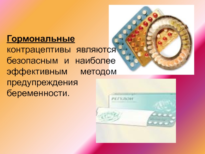 Слайд 10Гормональные контрацептивы являются безопасным и наиболее эффективным методом предупреждения беременности.