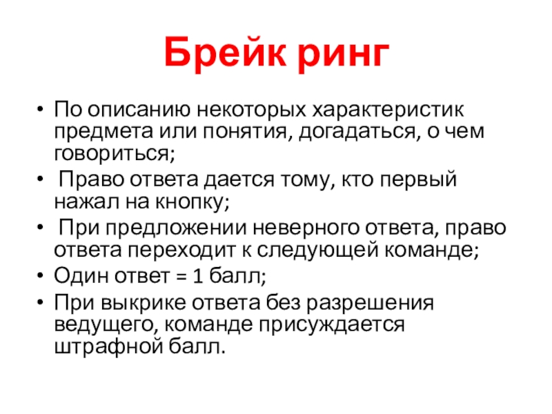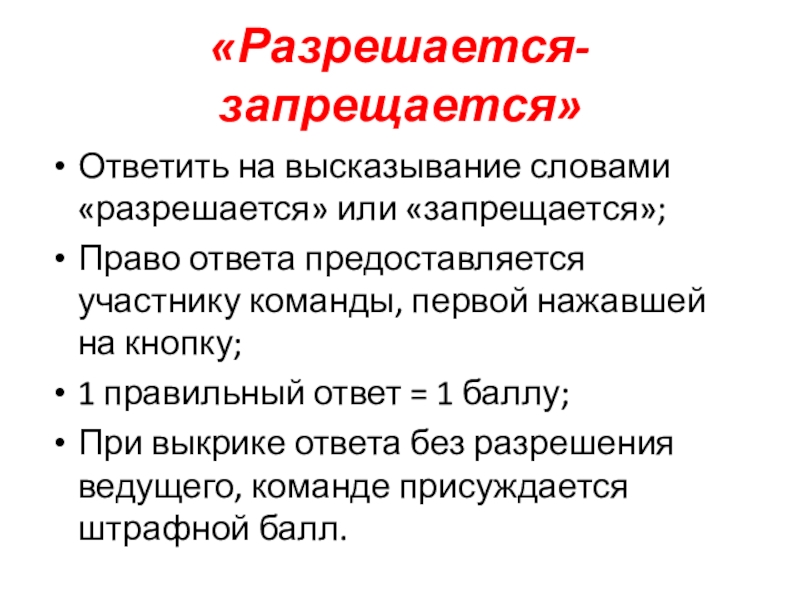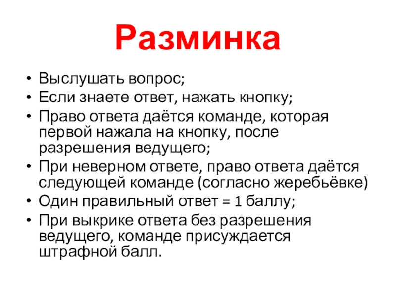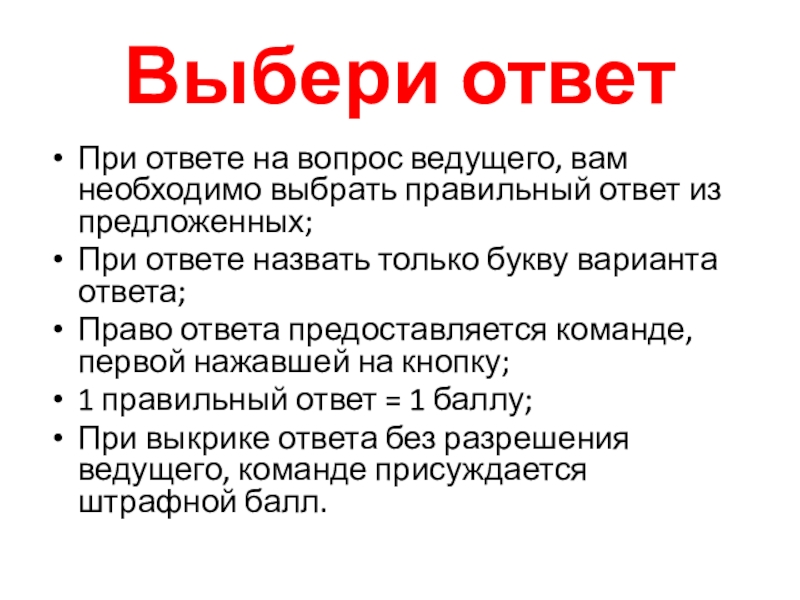 При выкрике ответа без разрешения ведущего, команде присуждается штрафной балл.