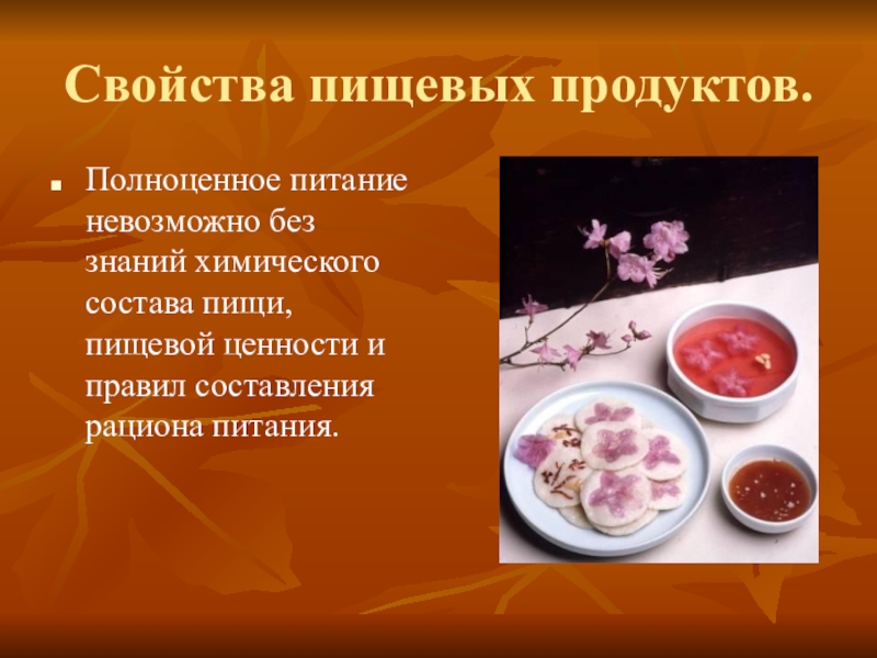 Полноценное питание невозможно без знаний химического состава пищи, пищевой
