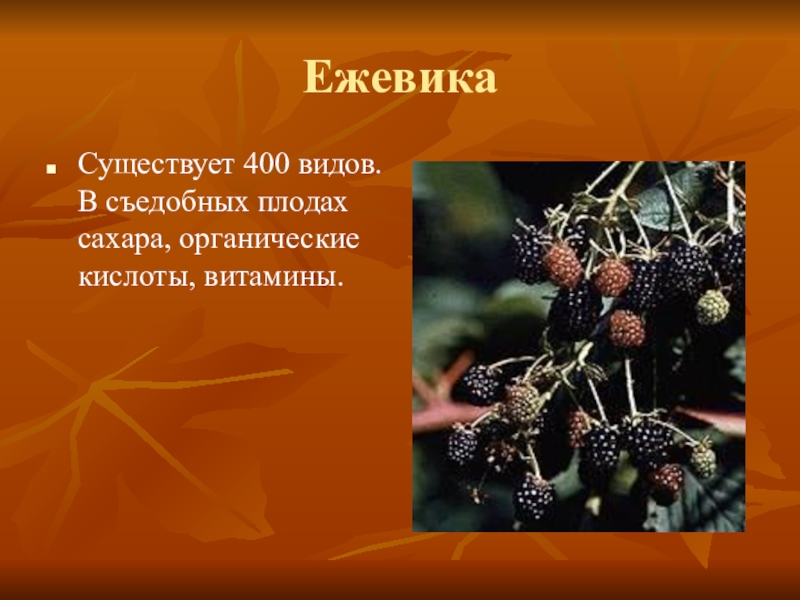 Существует 400 видов. В съедобных плодах сахара, органические кислоты, витамины.