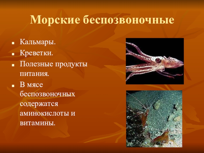В мясе беспозвоночных содержатся аминокислоты и витамины.