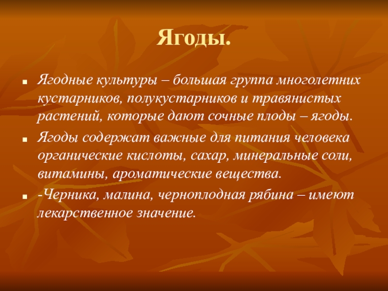 Ягодные культуры – большая группа многолетних кустарников, полукустарников и травянистых растений,