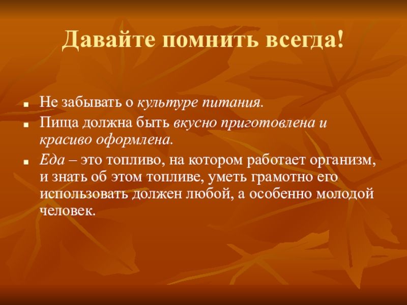 Еда – это топливо, на котором работает организм, и знать об этом топливе, уметь грамотно его использовать должен любой, а особенно молодой человек.