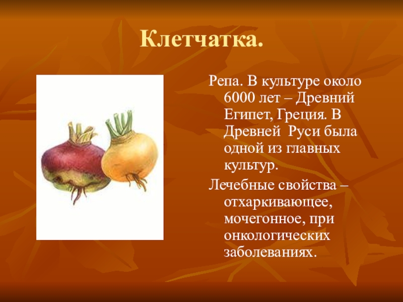 Репа. В культуре около 6000 лет – Древний Египет, Греция. В