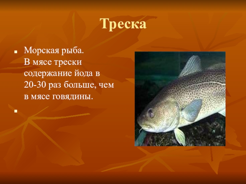 Рыба – источник питательных веществ высокой биологической ценности. Белки