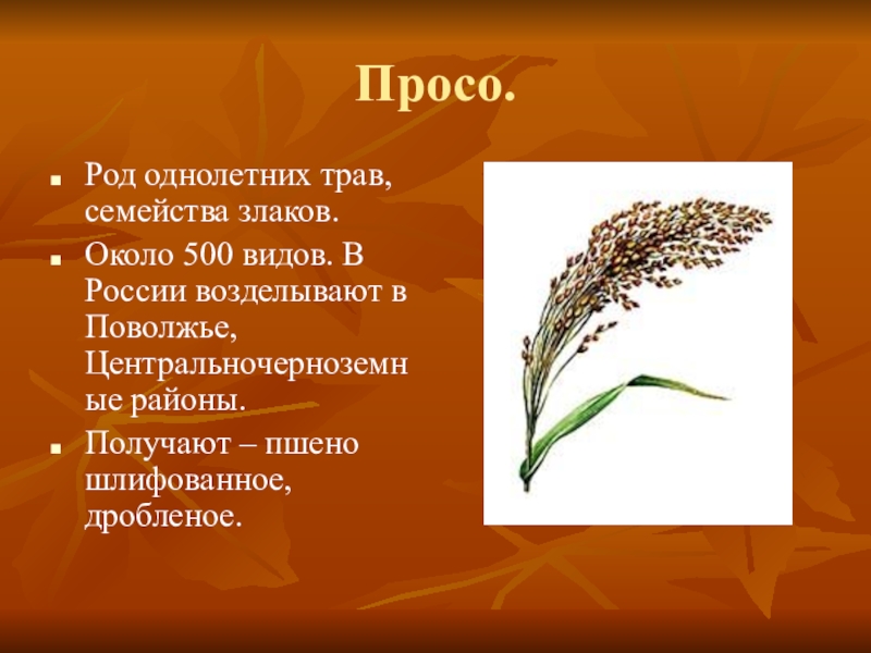 Зерновая культура. Около 20 видов. Одно из древнейших продовольственных растений Земли.