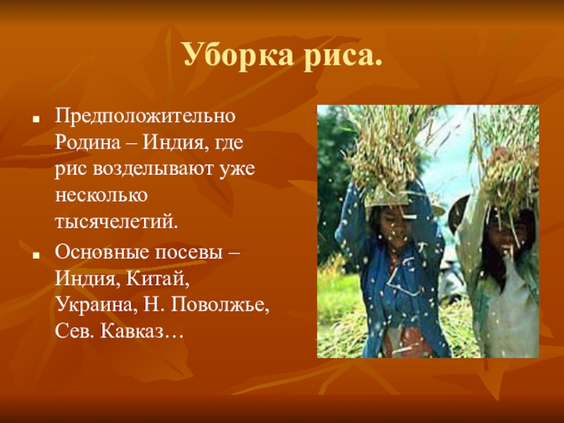 Предположительно Родина – Индия, где рис возделывают уже несколько тысячелетий.
