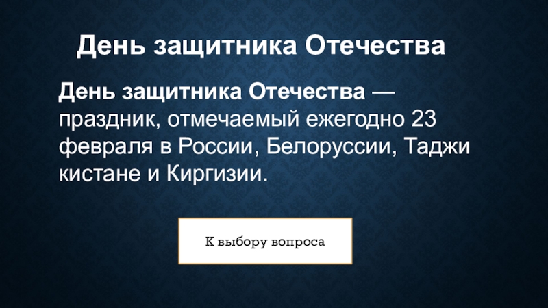 Это сайт презентаций, где можно хранить и обмениваться своими презентациями, докладами, проектами, шаблонами в формате PowerPoint с другими пользователями. Мы помогаем школьникам, студентам, учителям, преподавателям хранить и обмениваться учебными материалами.