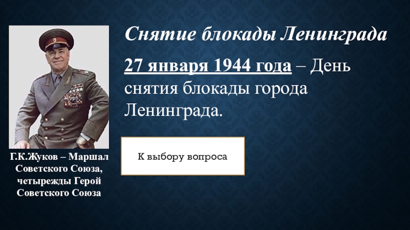 Г.К.Жуков – Маршал Советского Союза, четырежды Герой Советского Союза