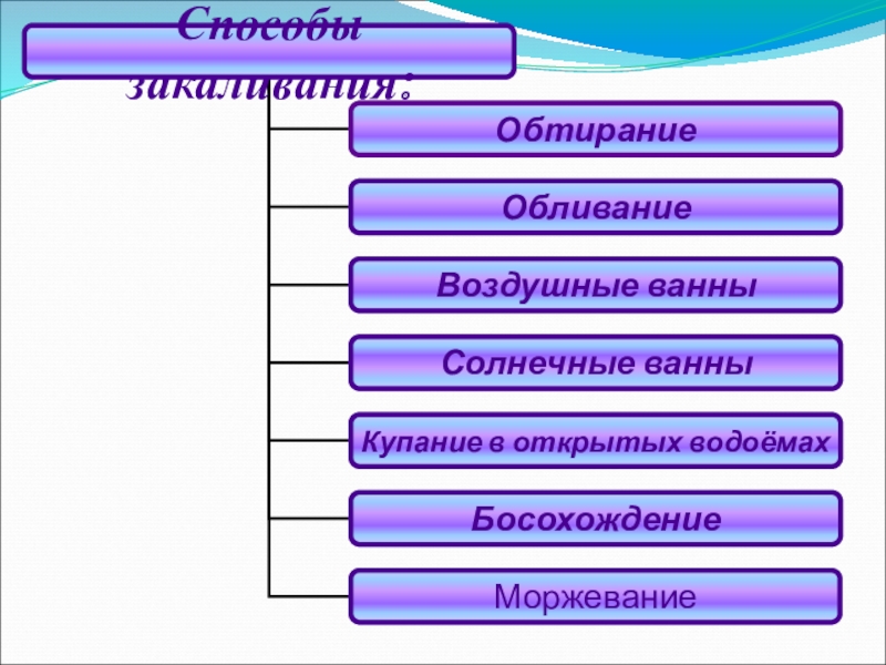 В основе закаливания лежит способность организма человека приспосабливаться меняющимся условием окружающей среды.