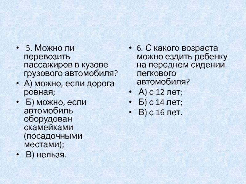 6. С какого возраста можно ездить ребенку на переднем сидении легкового автомобиля?