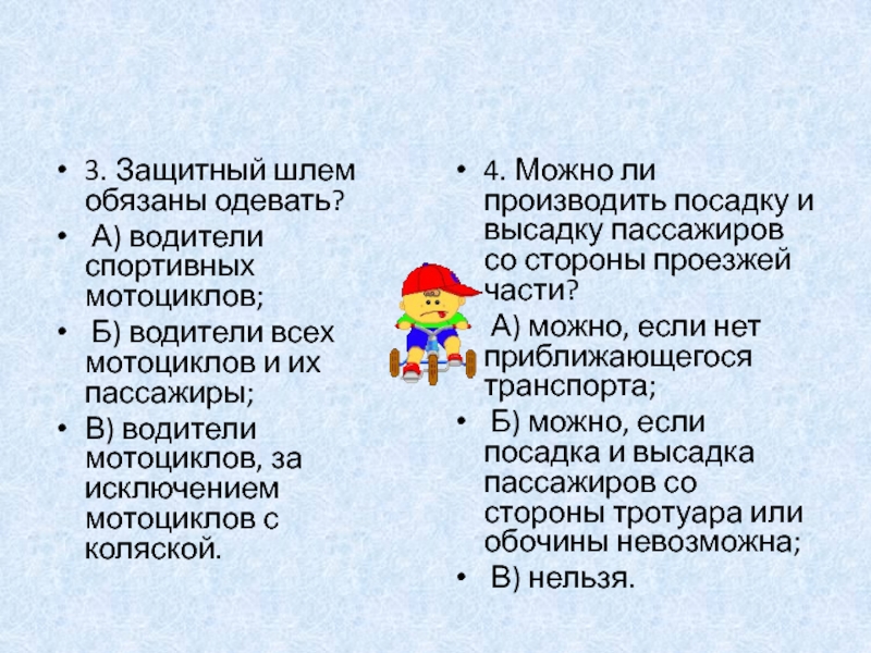 2. С какого возраста можно ездить на заднем сидении мотоцикла?