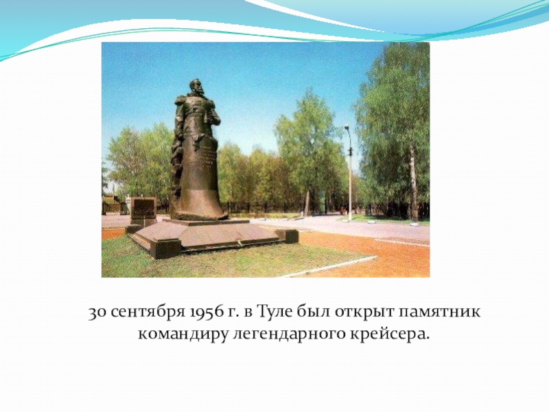 Слайд 1830 сентября 1956 г. в Туле был открыт памятник командиру легендарного