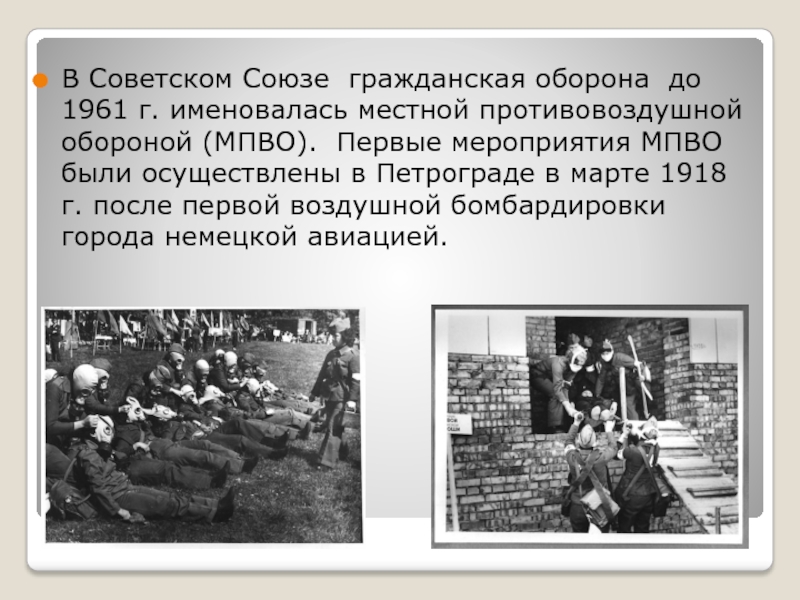 Слайд 5В Советском Союзе гражданская оборона до 1961 г. именовалась местной противовоздушной