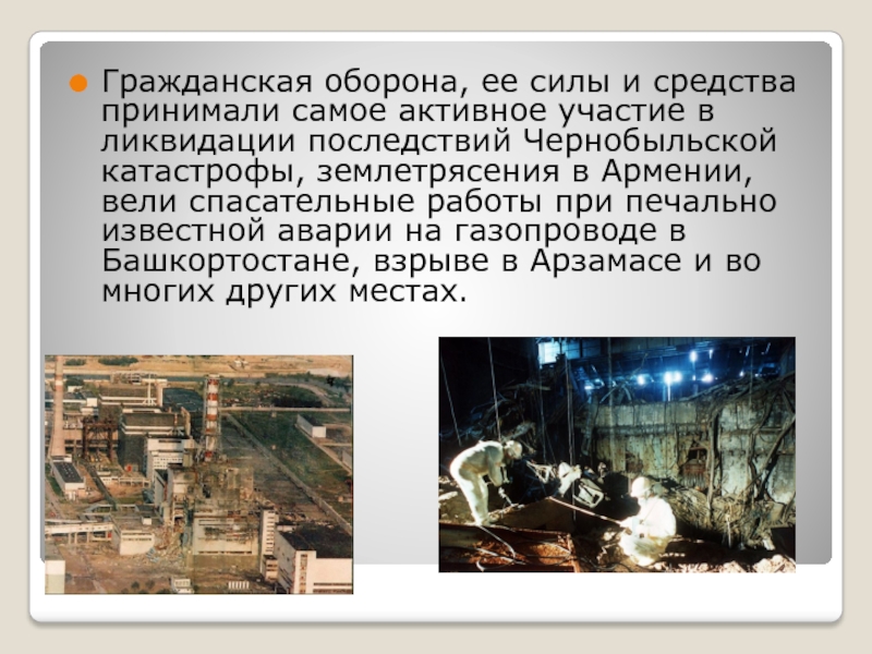 Слайд 14Гражданская оборона, ее силы и средства принимали самое активное участие в