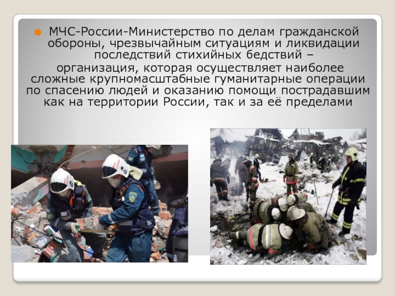 Слайд 17МЧС-России-Министерство по делам гражданской обороны, чрезвычайным ситуациям и ликвидации последствий стихийных