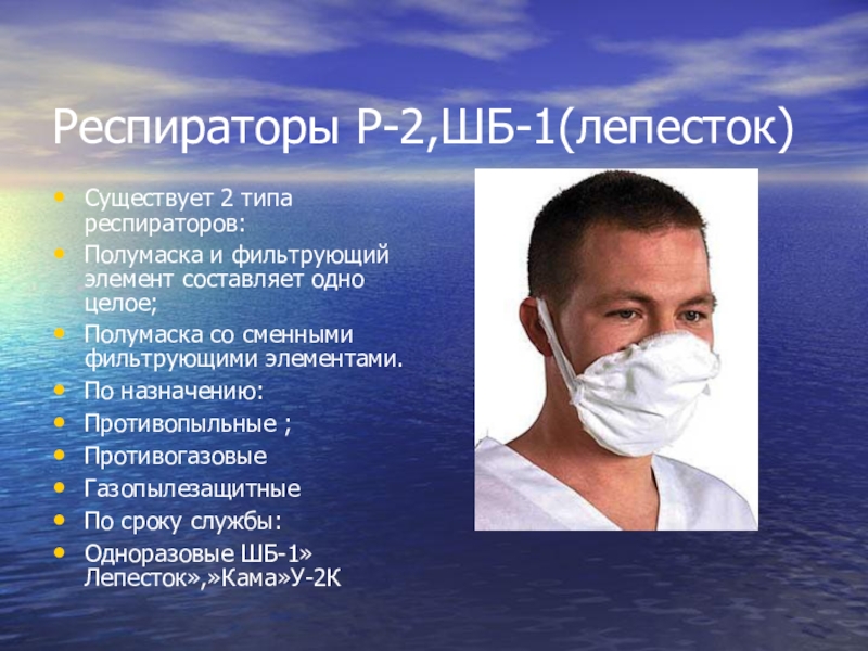 Слайд 8Респираторы Р-2,ШБ-1(лепесток)