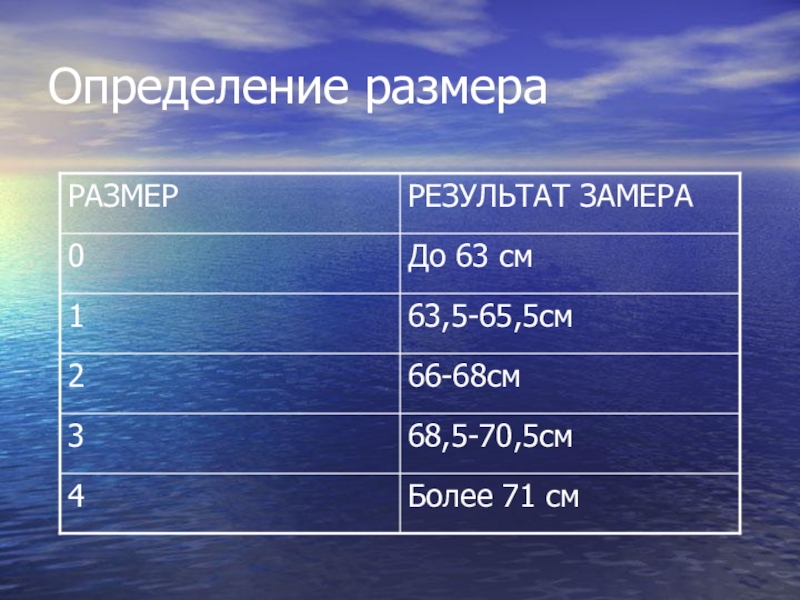 Учащимся предлагается провести замеры и по таблице подобрать размер шлема-маски.