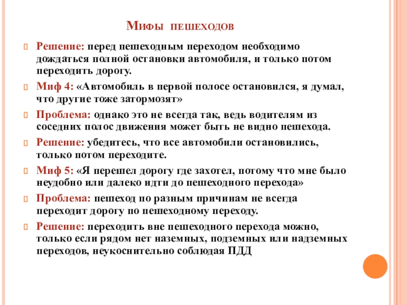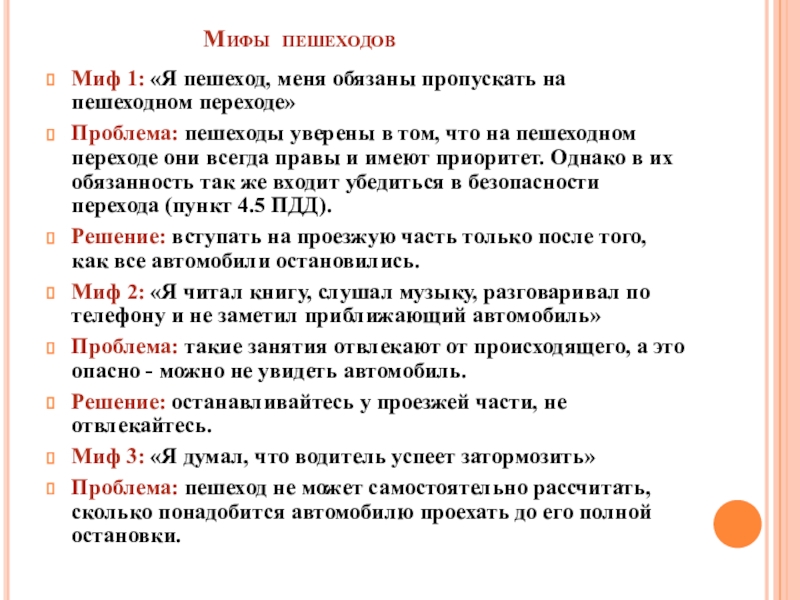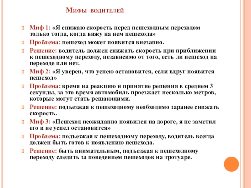 2. Взаимодействие пешеходов и водителей. Модели взаимодействия. Мифы пешеходов и водителей о поведении на дороге.