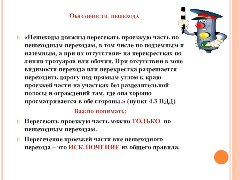 Пересечение проезжей части вне пешеходного перехода – это ИСКЛЮЧЕНИЕ из общего правила.