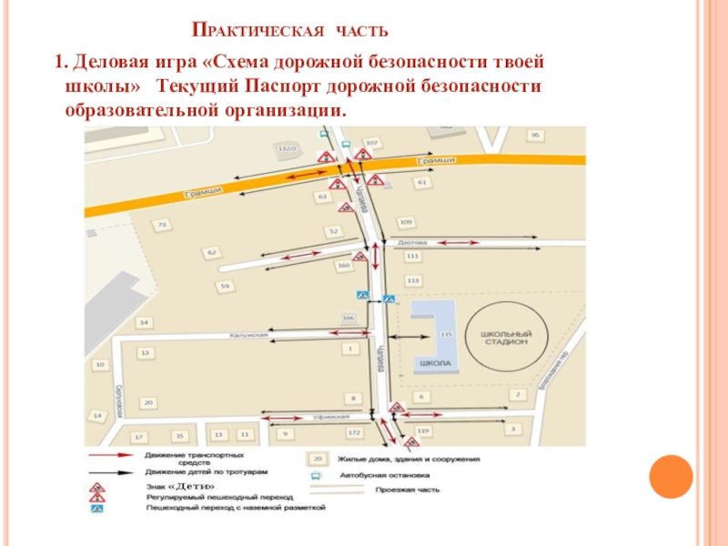 1. Деловая игра «Схема дорожной безопасности твоей школы» Текущий Паспорт дорожной безопасности образовательной организации.