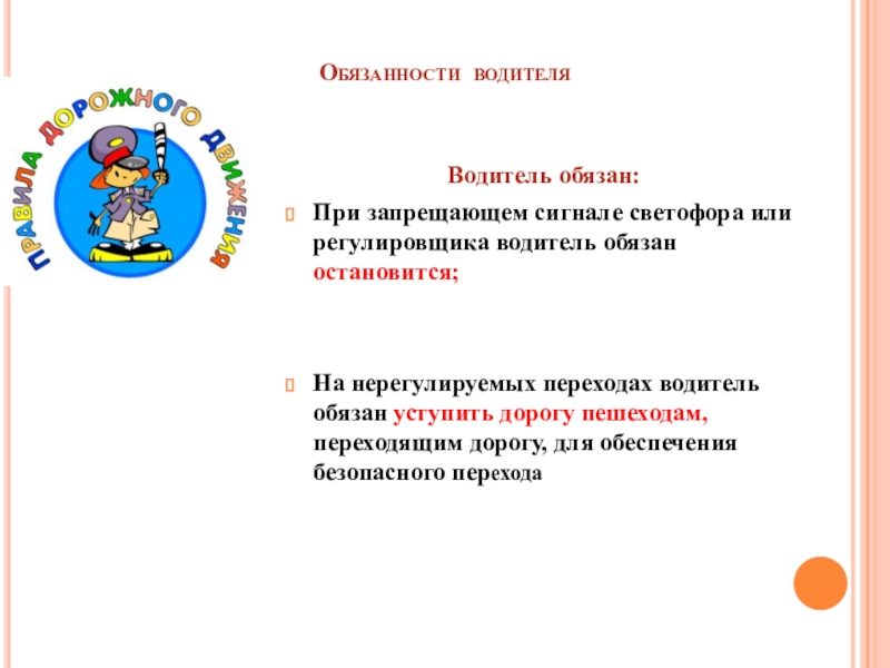 При запрещающем сигнале светофора или регулировщика водитель обязан остановится;