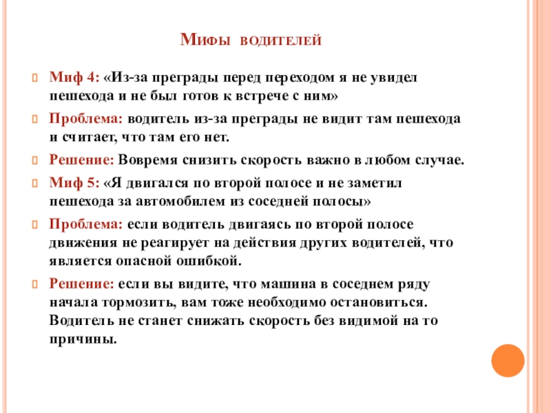 Миф 3: «Я думал, что водитель успеет затормозить»