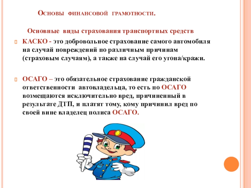 5. Основы финансовой грамотности: виды страхования, Европротокол.