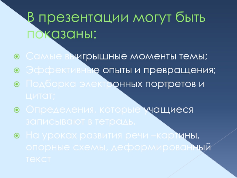 Это сайт презентаций, где можно хранить и обмениваться своими презентациями, докладами, проектами, шаблонами в формате PowerPoint с другими пользователями. Мы помогаем школьникам, студентам, учителям, преподавателям хранить и обмениваться учебными материалами.