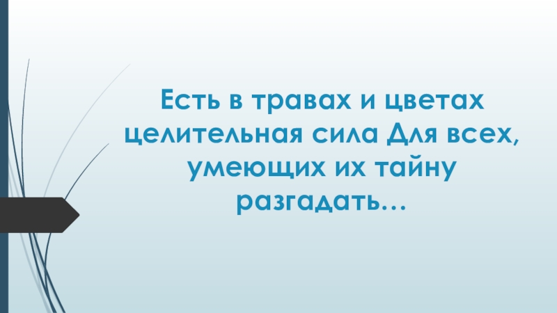 Слайд 13Есть в травах и цветах целительная сила Для всех, умеющих их