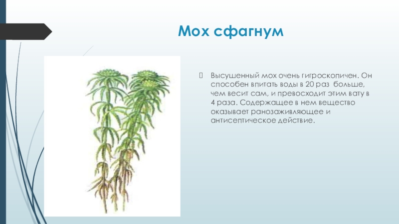 Высушенный мох очень гигроскопичен. Он способен впитать воды в 20