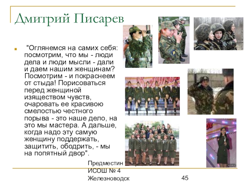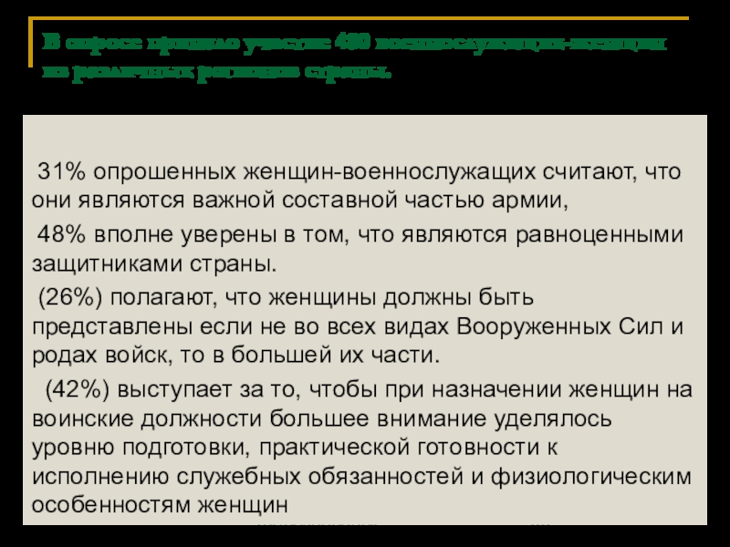выяснить, какова роль женщины-военного в современной системе Министерства обороны.