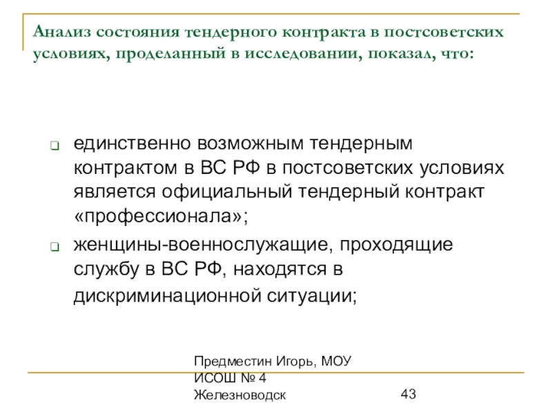 Слайд 43Предместин Игорь, МОУ ИСОШ № 4 Железноводск