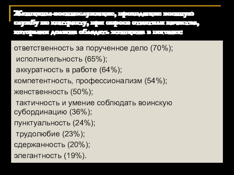 контракту, при опросе отметили качества, которыми должна обладать женщина в погонах: