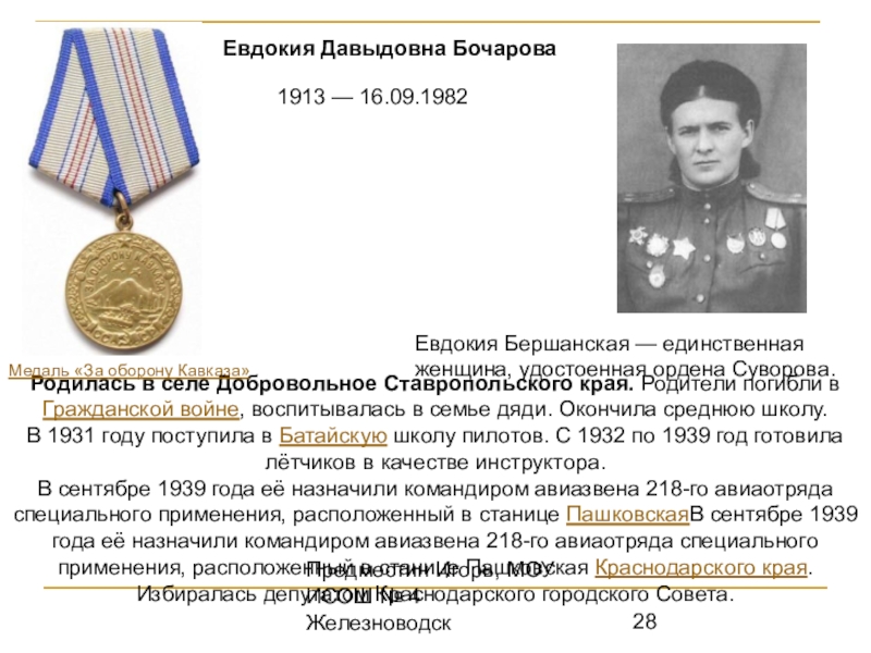 Евдокия Бершанская — единственная женщина, удостоенная ордена Суворова.