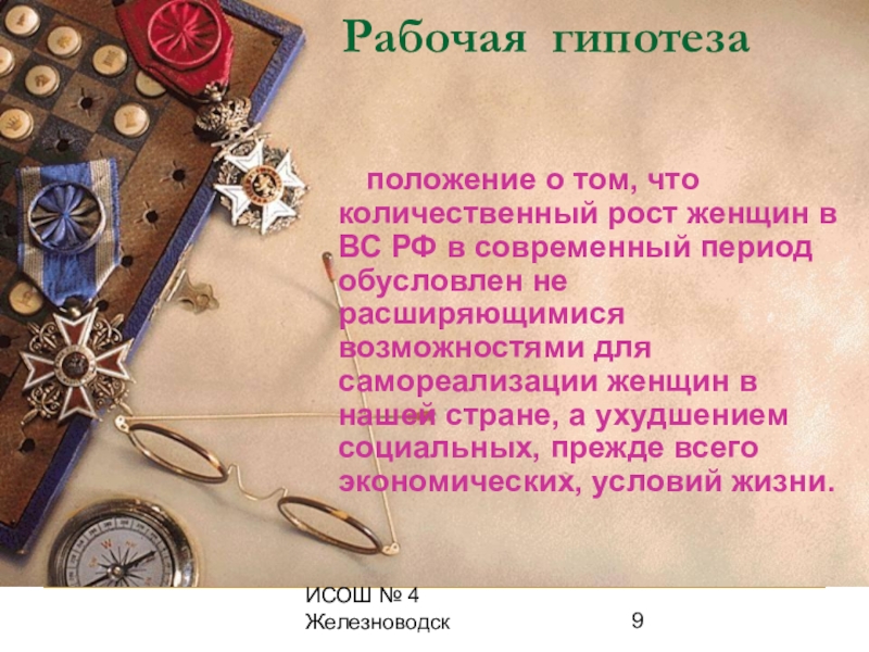 исследовать положение в условиях современной России особой социальной группы - женщин-военнослужащих;