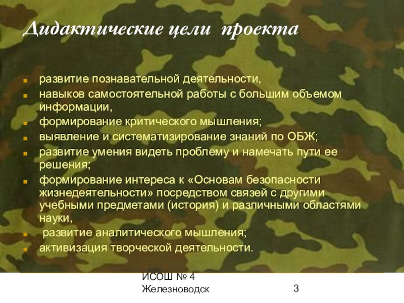 Проект, кроме вышеперечисленного, охватывает программный минимум по вопросам подготовки старшеклассников к службе в армии