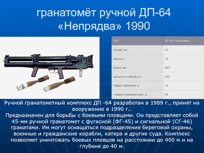 Слайд 36гранатомёт ручной ДП-64 «Непрядва» 1990