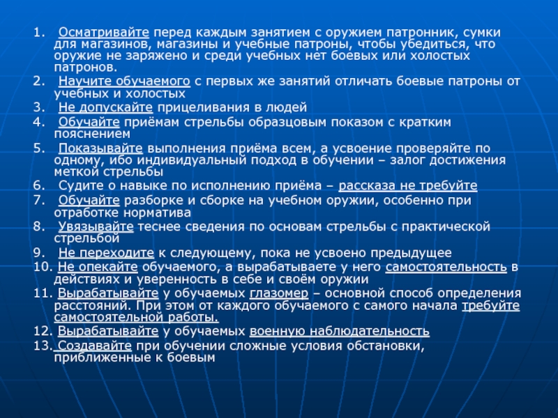 10. Не опекайте обучаемого, а вырабатываете у него самостоятельность в действиях и уверенность в себе и своём оружии