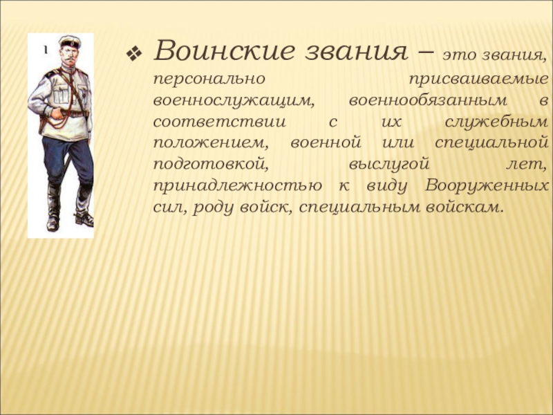 Слайд 2Воинские звания – это звания, персонально присваиваемые военнослужащим, военнообязанным в соответствии